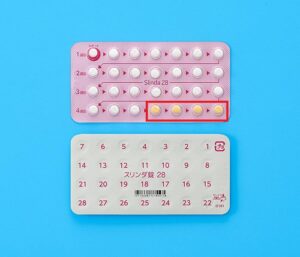 ●「プラセボ(25-28番目)の錠剤をのみ忘れた場合」(下記写真赤い囲み箇所):飲んだものとみなして、翌日からは通常のスケジュール通りに内服を継続して下さい。
